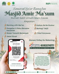 Dalam rangka menyambut dan menghidupkan bulan suci Ramadan 1447 H/2026 M, Masjid Amir Ma’sum RSU Islam Cawas menyelenggarakan berbagai kegiatan ibadah dan sosial, diantaranya: